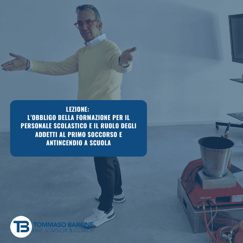 Tommaso Barone, RSPP e Formatore nella Sicurezza della Scuola dal 1998, terrà una lezione online dedicata a due tematiche fondamentali per la sicurezza scolastica: l’obbligo di formazione per il personale scolastico e il ruolo degli addetti al primo soccorso e antincendio a scuola. Questo evento è pensato per garantire che tutto il personale sia informato e preparato a gestire situazioni di emergenza.